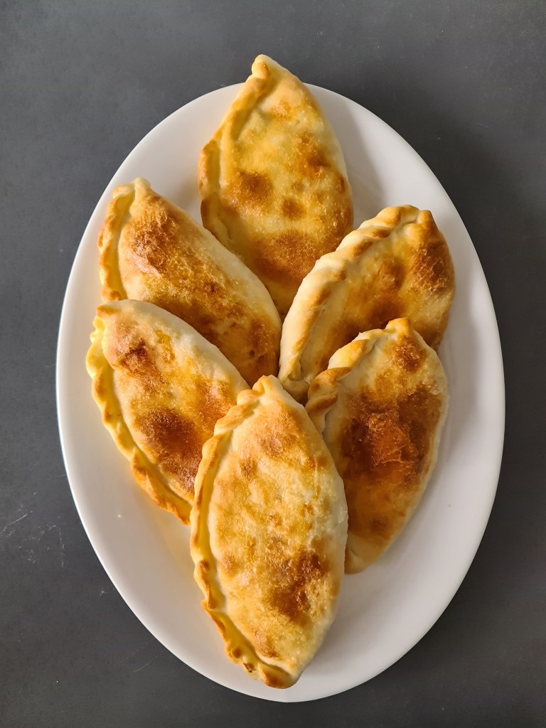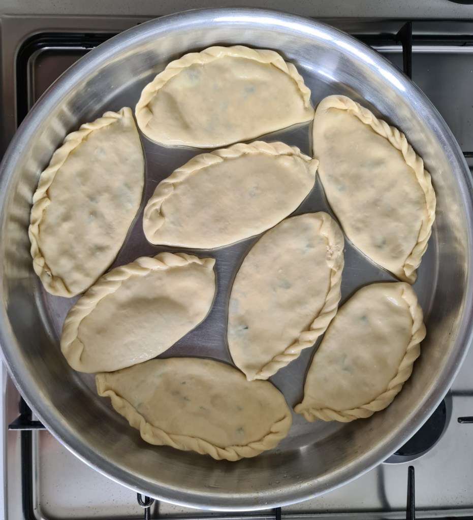 - Flatten each dough ball into a circle using dough roller. Add some of the filling to the middle, then fold the dough in half over the filling. Twist the edges or use a fork to secure them.